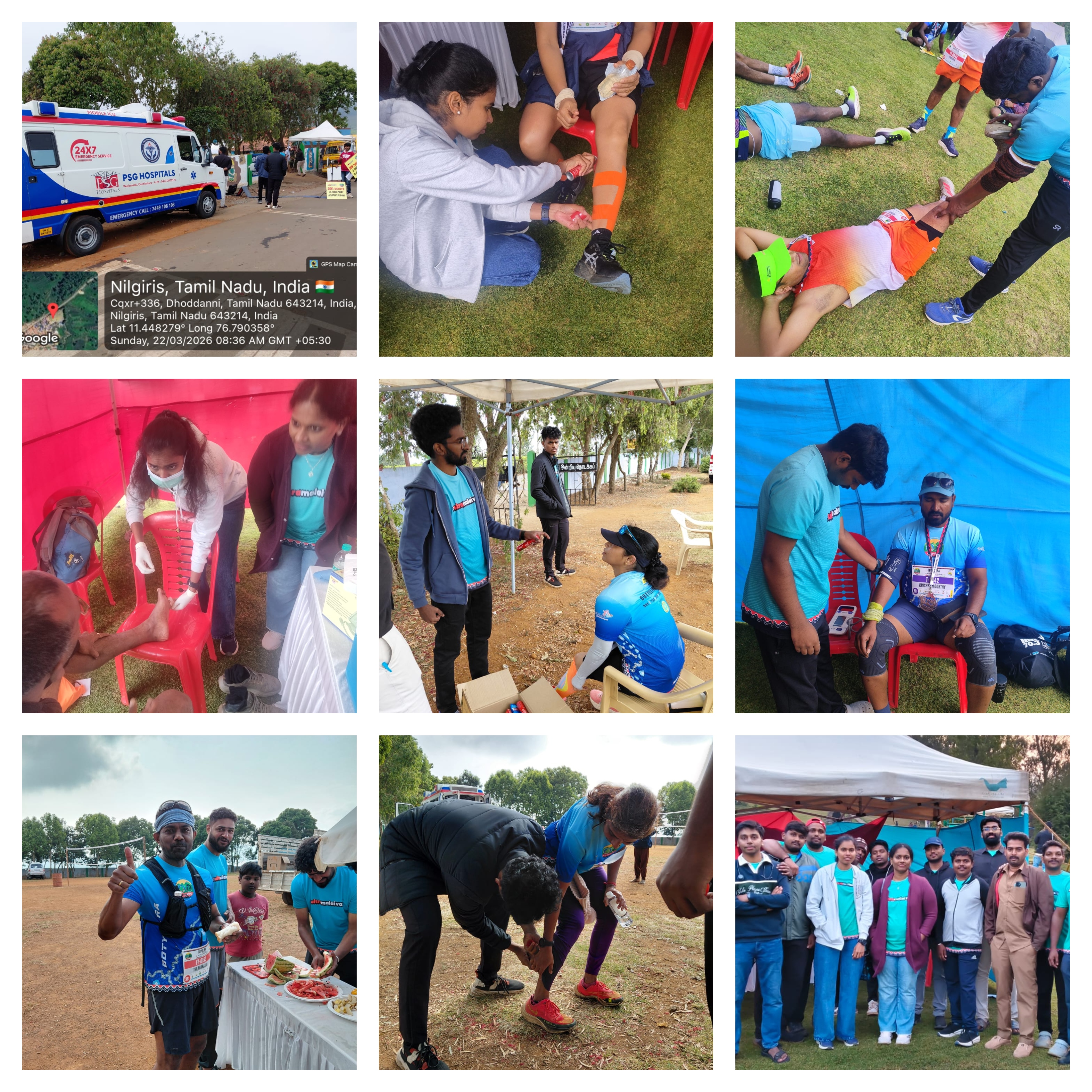 On the Spot Care for Every Athlete. First Aid Medical Camp by PSG Hospitals at ultramarathon held at The Nilgiris on 22.03.2026.