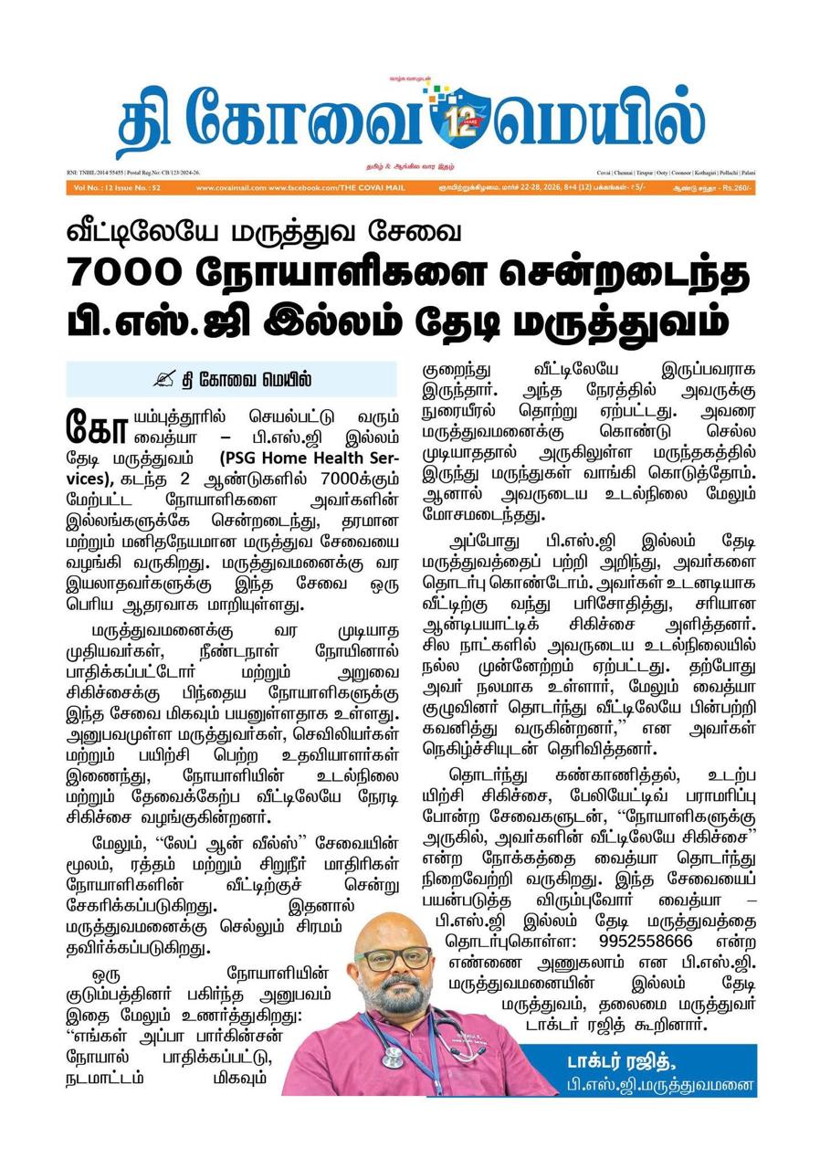 ‘Vaidya’ is a home-based healthcare service from PSG Hospitals which can be utilized by both normal patients and those who need palliative care. This service is launched in association with Coimbatore Cancer Foundation.