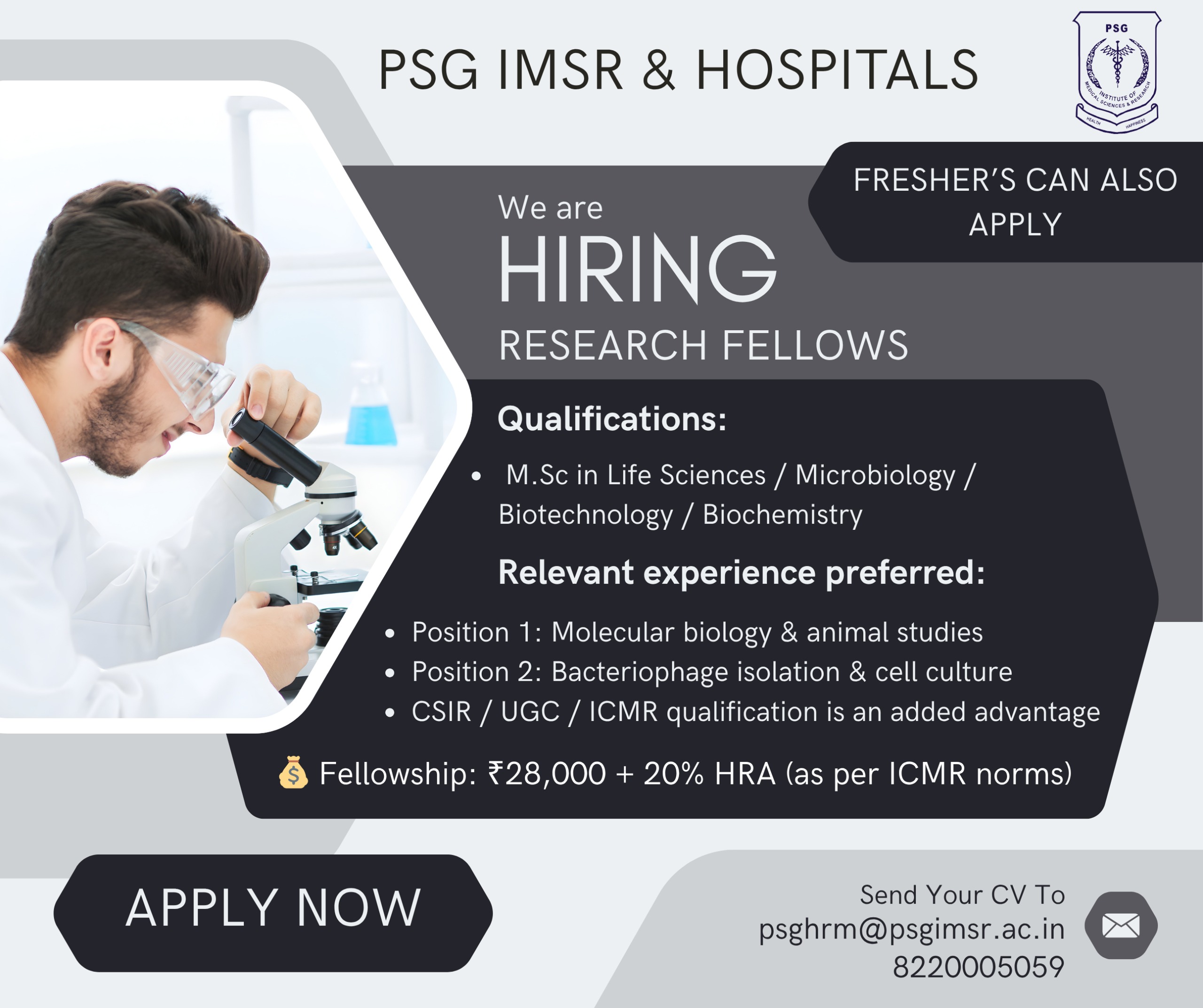 M.Sc in Life Sciences/Microbiology/Biotechnology/Biochemistry