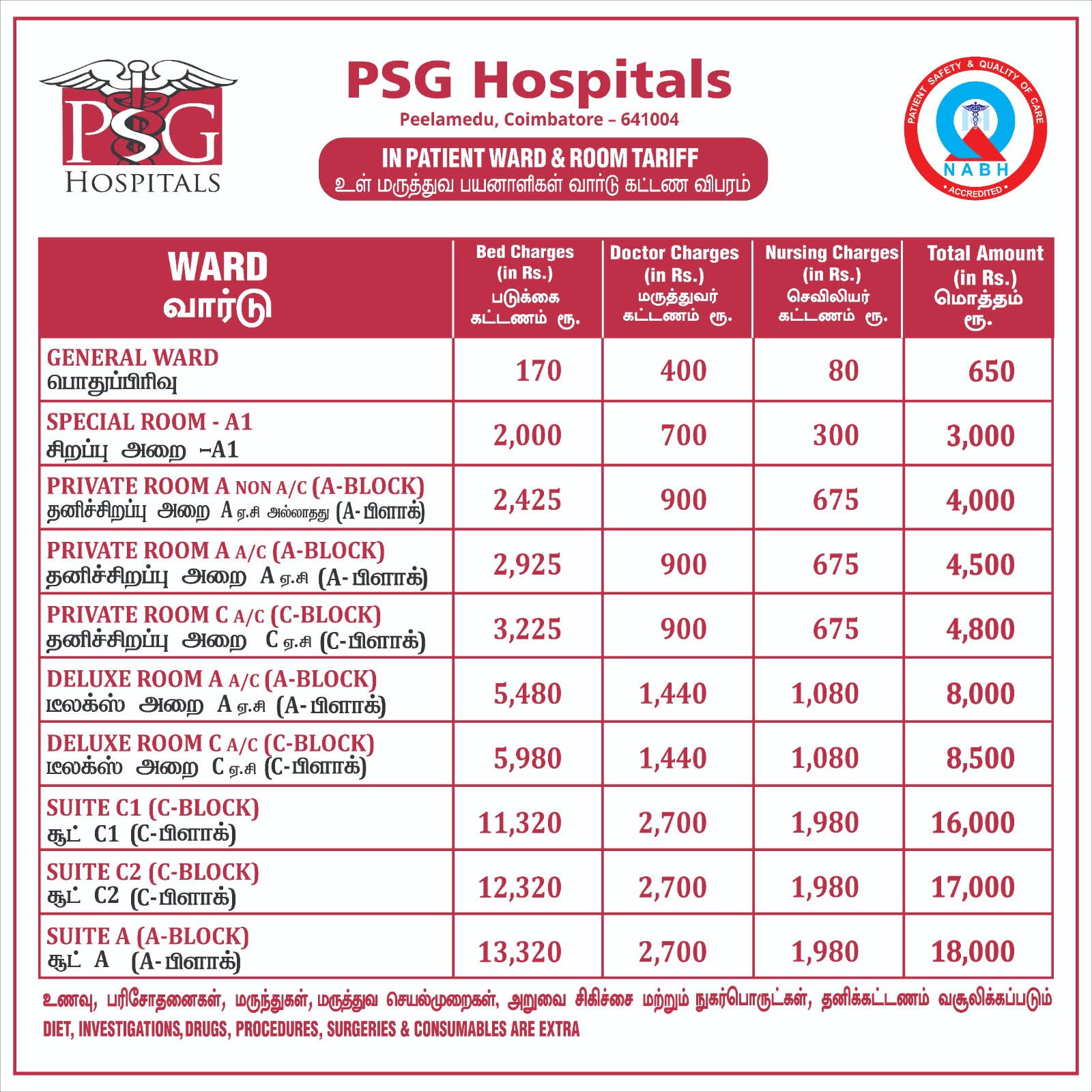 IN Patient Room Tariff